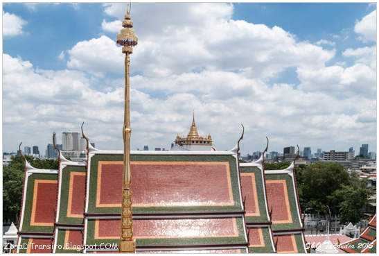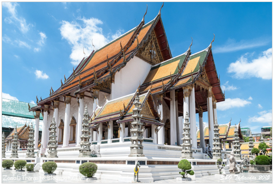 Nuestra primera visita del día fue el Wat Suthat, al que nos acercamos en taxi desde el hotel (50 Bahts).